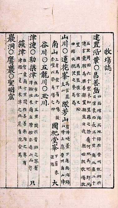 1871년 『영남읍지(嶺南邑誌, 13책』 「진주목읍지, 목장지(牧場誌, 103a~105b면)」에 기록된 창선목장(昌善牧場)의 현황이 다음과 같이 기록되어 있다.