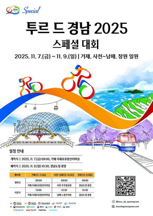 경상남도는 11월 7일부터 11월 9일까지 남해안 4개 시군에서 '투르 드 경남 2025 스페셜 대회'를 개최한다고 밝혔다.