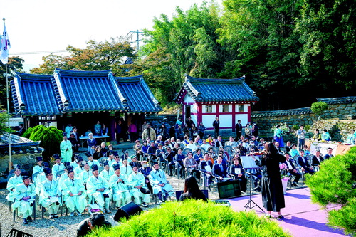 명륜당 뜰에서는 색소폰 연주와 한춤 등 식전공연과 함께 전통다례반의 찻자리가 열려 참석자들이 따뜻한 차 한 잔의 여유를 즐겼다.
