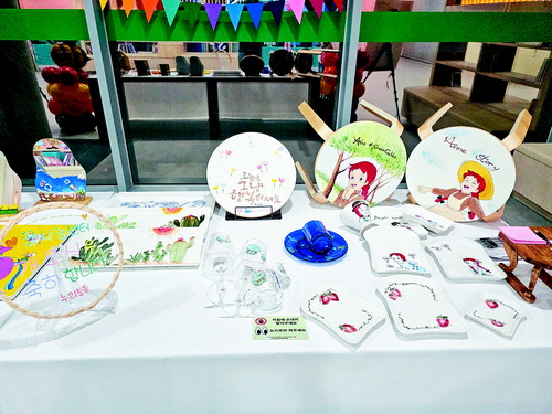 지난 7일 열린 남해군생활SOC꿈나눔센터 개관식에서 누리보듬사회적협동조합 이용자들의 작품전시회가 열렸다.