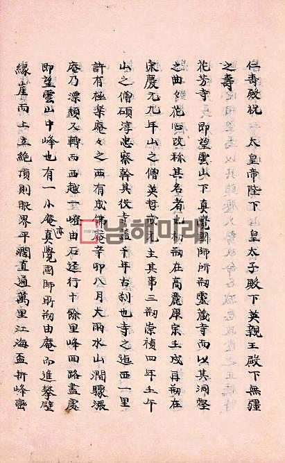 마지막 사찰 항목에는 원산(호구산)의 용문사(龍門寺), 망운산의 화방사(花芳寺) 등 주요 사찰들의 위치와 연혁 등을 상세히 기록해 놓았다.