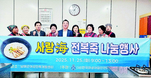 한국여성어업인남해군수협분회는 지난달 25일 남해여성능력개발센터에서 지역 여성업인이 직접 참여한 '전복죽 나눔행사'를 진행했다고 밝혔다.