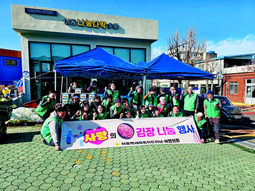 이동면 새마을지도자협의회(회장 박영호)·부녀회(회장 박춘화)는 지난 6∼8일 3일 동안 나눔다락에서 회원 40여명이 참여한 가운데 '사랑의 김장김치 나눔 행사'를 펼쳤다.