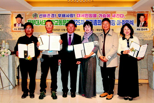 재부대서초등학교총동문회의 제25차 정기총회 및 회장 이·취임식이 지난 5일 연산동 해암뷔페 대연회실에서 성료했다.