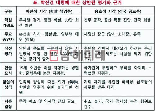 2025년 대한민국은 여전히 '역사 전쟁' 중이다. 그 최전선에 부하의 암살로 29세로 생을 마감한 남해 출신 故 박진경 대령(1918~1948)이 서 있다. 지난 10월 국가보훈부가 그를 국가유공자로 지정하자, 12월 14일 대통령이 이례적으로 '지정 취소 검토'를 지시하며 논란에 기름을 부었다. 이에 지역 진보 단체인 남해촛불행동은 즉각 반발하며 지난 17일 고(故) 박진경 대령의 유공자 인증 취소와 무공훈장 취소, 박진경 동상 철거 등을 외치는 기자회견을 앵강공원에서 열었다. "학살자의 동상을 남해에 둘 수 없다"는 것이 그들의 주장이다. 그러나 역사는 어느 한쪽의 목소리만으로 기록되어서는 안 된다. 특히 특정 인물에 대한 '단죄'는 감정적인 구호가 아니라, 차가운 이성과 객관적인 증거 위에서 이루어져야 한다.