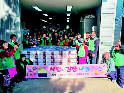 남면 새마을남녀지도자협의회는 매년 사랑의 김장나누기 행사를 통해 안부 묻기도 병행하면서 지역사회에 온정을 펼치고 있다.