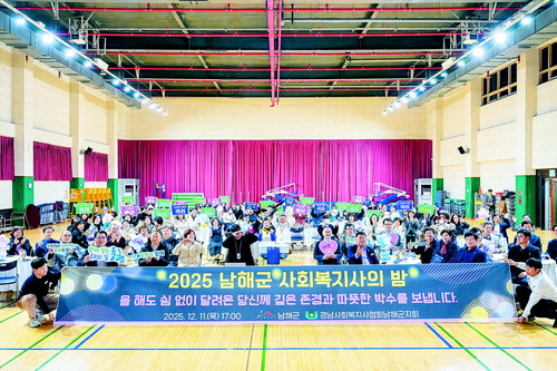 남해군과 경남사회복지사협회남해군지회는 지난 12월 11일 국민체육센터 2층 다목적홀에서 '2025 남해군 사회복지사의 밤'을 개최하였다. 약 140여 명의 사회복지사와 내빈이 참석한 가운데 감동적인 화합의 장이 펼쳐졌다.