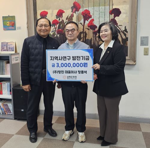 서면 노구 출신 정종석 향우가 지역사 연구에 사용해 달라며 남해문화 발전기금 300만원을 쾌척했다. 정종석 대표는 30여 년간 가스시설 공사 분야에 종사하다가 2022년 6월 ㈜창진을 설립, 기계설비 및 가스시설 공사업(제1종)을 운영하며 산업 발전에 기여하고 있다.