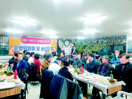 재부사하구남해향우회(회장 차진규)는 지난 18일 다대포 남면횟집에서 송년의 밤 행사를 열고 한 해를 돌아보며 향우 간 화합을 다지는 시간을 가졌다.