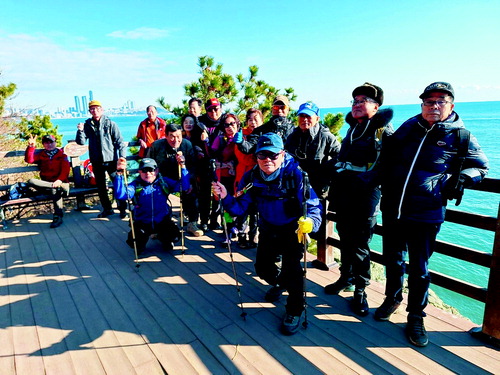 돛들산우회(회장 정용식)는 지난달 28일 이기대 일원으로 제297차 정기산행을 다녀왔다. 이날 오전 용호동 오륙도 해맞이공원에 집결한 회원들은 스트레칭으로 몸을 풀고 트레킹에 나서 어울마당-동생말 코스를 따라 탁 트인 바다 풍경과 해안 절경을 감상하며 호연지기를 길렀다.