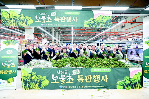 남해군은 오는 1월 20일까지 서울 하나로마트 창동점에서 수도권 소비자를 대상으로 겨울 시금치 '보물초' 특별 판매 행사를 개최한다.