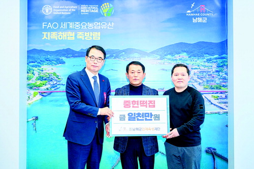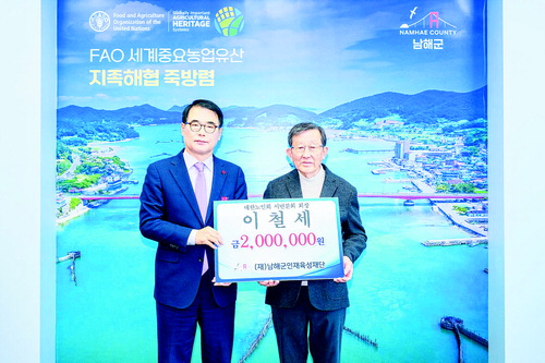 (재)남해군인재육성재단은 이철세 서면노인회 분회장, 중현떡집, 금송운수, (사)한국쌀전업농남해군연합회에서 인재육성기금을 기탁했다고 밝혔다.