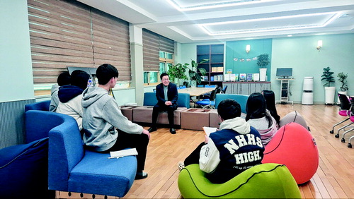 김 전 차관보는 이날 학생들과 마주 앉아 정해진 발언이나 형식적인 질문 없이 수업, 진로, 학교생활 전반에 대한 이야기를 차분히 경청했다.