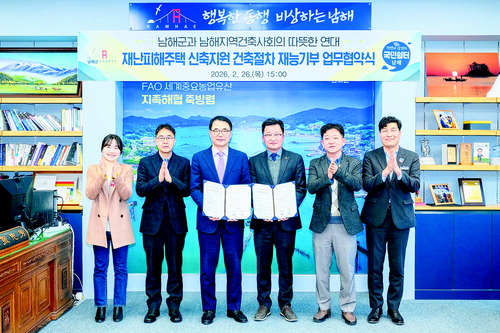 남해군과 남해지역건축사회는 이번 협약을 계기로 자연재난으로 인해 주거 상실 위기에 처한 주민들에게 보다 체계적이고 신속한 지원을 통해 재난 복구 속도를 높이는 데 주력할 계획이다.