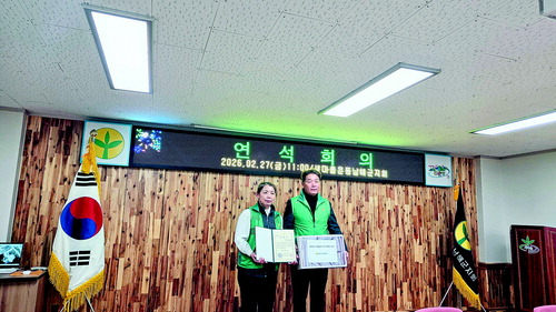 새마을운동남해군지회(회장 박주선)는 지난달 27일, 새마을회관에서 읍면 협의회, 부녀회, 문고회장 등 32명이 참석한 가운데 2026년 첫 읍면 연석회의를 개최했다. 이날 연석회의에서 2025년 새마을 읍면사업일지 우수기록자 키쿠치루미 창선면부녀회 총무에게 상장 및 부상을 전달하며 세심한 기록 활동을 치하했다.