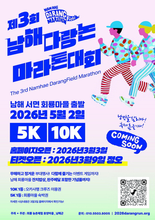 남해의 대표적인 자연경관인 다랑논을 배경으로 한 특별한 마라톤 대회가 열린다. 제3회 남해 다랑논 마라톤 대회가 오는 5월 2일(토) 오후 3시 남해군 서면 북부 지역 다랑논 코스에서 개최될 예정이다.