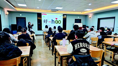주 2회 전교생을 대상으로 원어민 교사(유 페이민)가 진행하는 중국어 회화 수업은 학생들의 글로벌 감각을 깨우고 있다. 일본어 교육과 병행하여 농촌 학교에서도 수준 높은 제2외국어 습득이 가능하다.