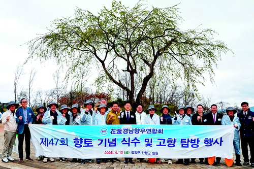 재부경남향우연합회(회장 박정삼)는 지난 10일 함양군 백연유원지 일원에서 열린 '제47회 재일·재경·재부도민회 2026년 향토기념 식수행사'에 참가했다.