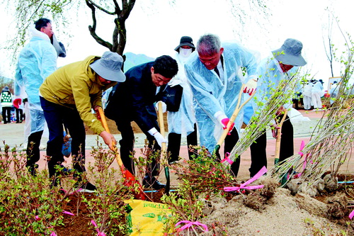 올해로 47회째를 맞은 향토기념 식수행사는 1975년 양산에서 시작돼 재일·재경·재부 도민회 회원들이 매년 고향을 찾아 직접 나무를 심으며 애향심을 실천해 온 행사다. 이날 참가자들은 백연유원지 약 1만㎡ 부지에 벚나무 등 9종 7300여 그루를 심으며 지속 가능한 생태환경 조성에 힘을 보탰다.