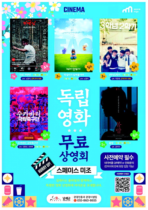 남해군은 문화공간 스페이스 미조에서 독립영화 상영 프로그램을 운영한다고 밝혔다.