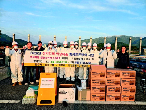 한편, 남해군보건소는 5월 중 2차 드론 방역을 실시할 예정이며, 하절기 내 지속적인 방역활동을 통해 주민 건강 보호에 최선을 다할 방침이다.