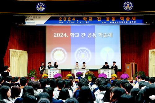 남해해성고(교장 백종기)는 17일 대구 경신고, 현대 청운고와 자기주도적 연구 활동 결과물을 공유하는 공동학술제를 개최했다고 밝혔다. 이번 공동학술제는 학교 교육과정 충실화, 학교 교육 형태의 다변화 추세 적극 대응, 학교 간 협력 프로그램 운영의 취지 하에 공교육 활성화라는 목표를 가지고 있다. 그리고 매년 한 단계 성장할 수 있는 다양한 교육프로그램 개발과 교류를 통해 학생들의 탐구 역량과 실천 역량을 기를 수 있는 기회를 지속적으로 제공할 계획임을 밝혔다.