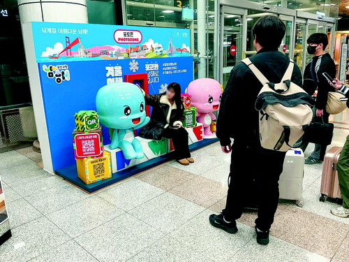 팝업존에는 남해군 대표 캐릭터 '해랑이·해순이' 인형 조형물이 설치되어 방문객들의 시선을 사로잡는 포토존 역할을 하고, 배경 시트지에는 남해의 푸른 바다와 자연경관, 주요 관광 명소가 감각적으로 표현돼 남해를 한눈에 조망할 수 있도록 구성됐다.
