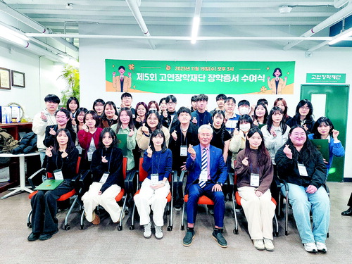삼지건설(주) 이소영(이동·석평) 회장이 설립한 고연장학재단은 지난 19일 기장군 일광읍 소재 재단 사무실에서 제5회 '고연장학생 장학증서 수여식'을 열고 장학금과 후원금 1억 원을 전달했다.