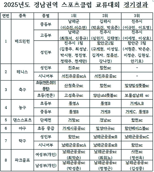남해군은 지난 11월 29일 남해군 일원에서 '2025년 경남권역 스포츠클럽 교류대회'가 여러 동호인들의 뜨거운 참여 속에 개최됐다고 밝혔다.