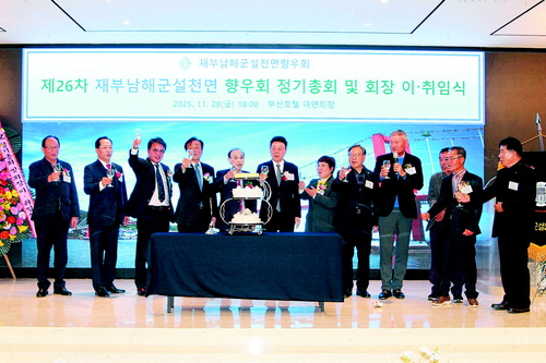 재부남해군설천면향우회의 제26차 정기총회가 지난달 28일 동광동 부산관광호텔 대연회실에서 성료했다.