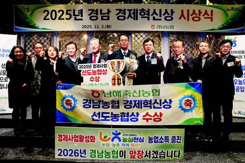 남해축산농협(조합장 김성찬)은 지난 2일 창원 리베라컨벤션에서 열린 2025년 경남농협 경제혁신상 시상식에서 경제사업 성장 실적이 우수한 농·축협에 수여되는 '선도농협상'을 수상했다.
