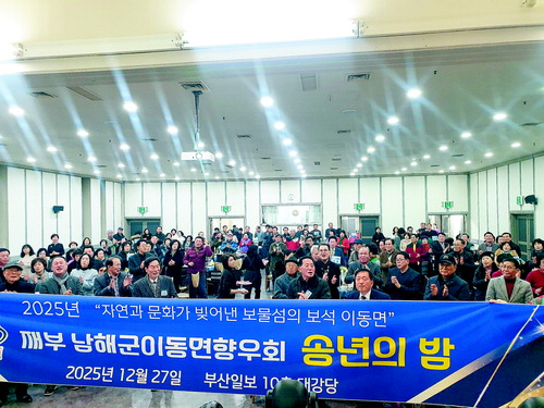 지난달 27일 재부남해군이동면향우회(회장 지영만)의 2025년도 송년의 밤 행사가 부산진역 부산일보사 10층 대강당에서 성료했다.