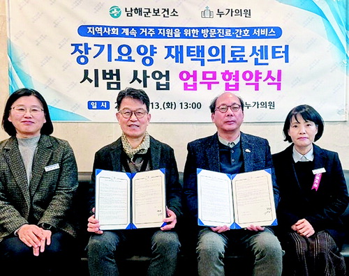이번 협약에 따라 남해군보건소와 누가의원은 △재택의료 대상자 발굴 및 연계 △방문진료 및 건강관리 서비스 제공 △대상자 건강상태 모니터링 △지역 돌봄자원과의 협력체계 구축 등 장기요양 재택의료 서비스의 원활한 운영을 위해 상호 협력할 계획이다.