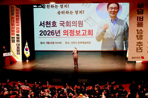 서천호 국민의힘 국회의원은 24일 사천 문화예술회관에서 지난 1년간의 의정활동 성과를 보고하고 지역발전 청사진을 제시하는 '2026년 의정보고회'를 개최했다.