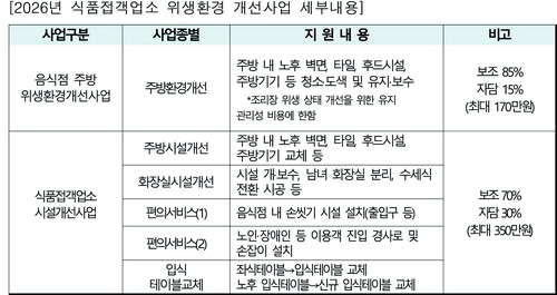 주방 청소 및 시설 개선 등 분야별 최대 85% 보조금 지원