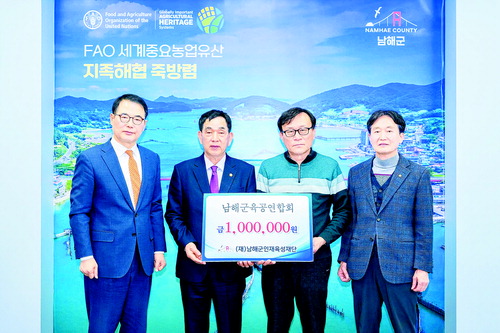 (재)남해군인재육성재단은 지난 5일 남해군육공연합회에서 지역 인재 양성을 위한 인재육성기금 100만 원을 기탁했다고 밝혔다.