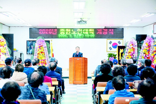 중현노인대학(학장 이현철)은 지난 9일 노인대학생 110여 명이 참석한 가운데 개강식을 개최했다.