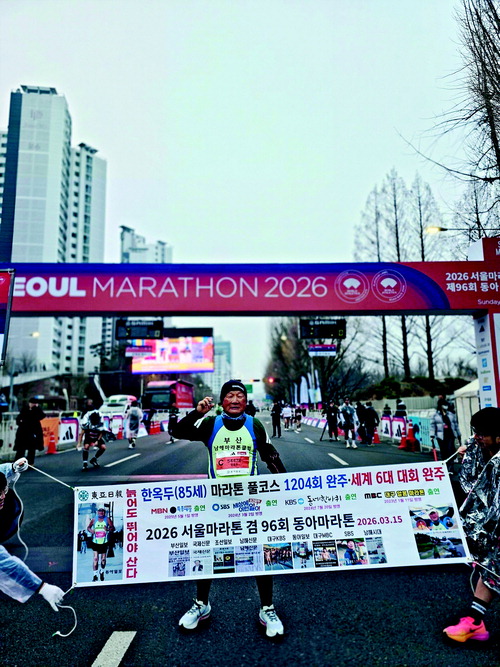 남면 출신 한옥두 향우가 지난 15일에 열린 '2026 서울마라톤' 대회에 출전해 최고령 참가자로 완주에 성공했다.