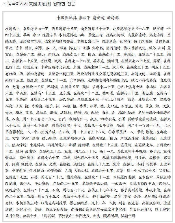 동국여지지 남해현 기록은 해양과 산악이 결합된 공간 속에서 형성된