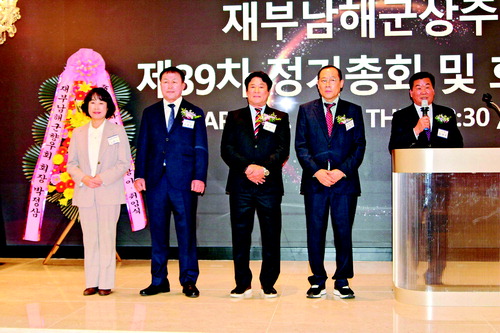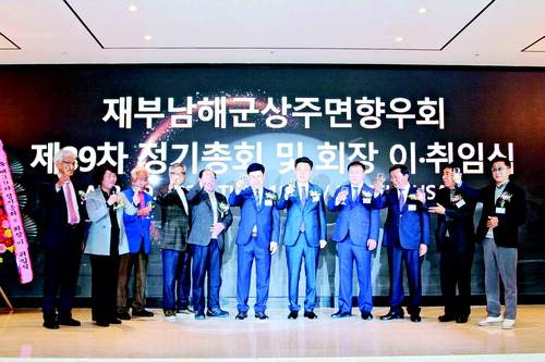 재부남해군상주면향우회의 제39차 정기총회 및 회장 이·취임식이 지난 9일 동광동 부산호텔 대연회실에서 성료했다.