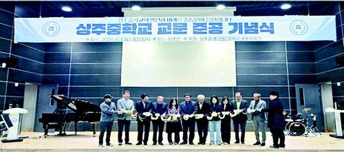 이날 기념식에서는 상주중학교 학생들의 사물놀이 축하공연과 경과보고에 이어 정재주 회장의 축사와 김봉겸 교장의 답사가 진행되었으며, 이후 내빈들이 함께하는 테이프 커팅식을 통해 정문 준공을 축하했다.